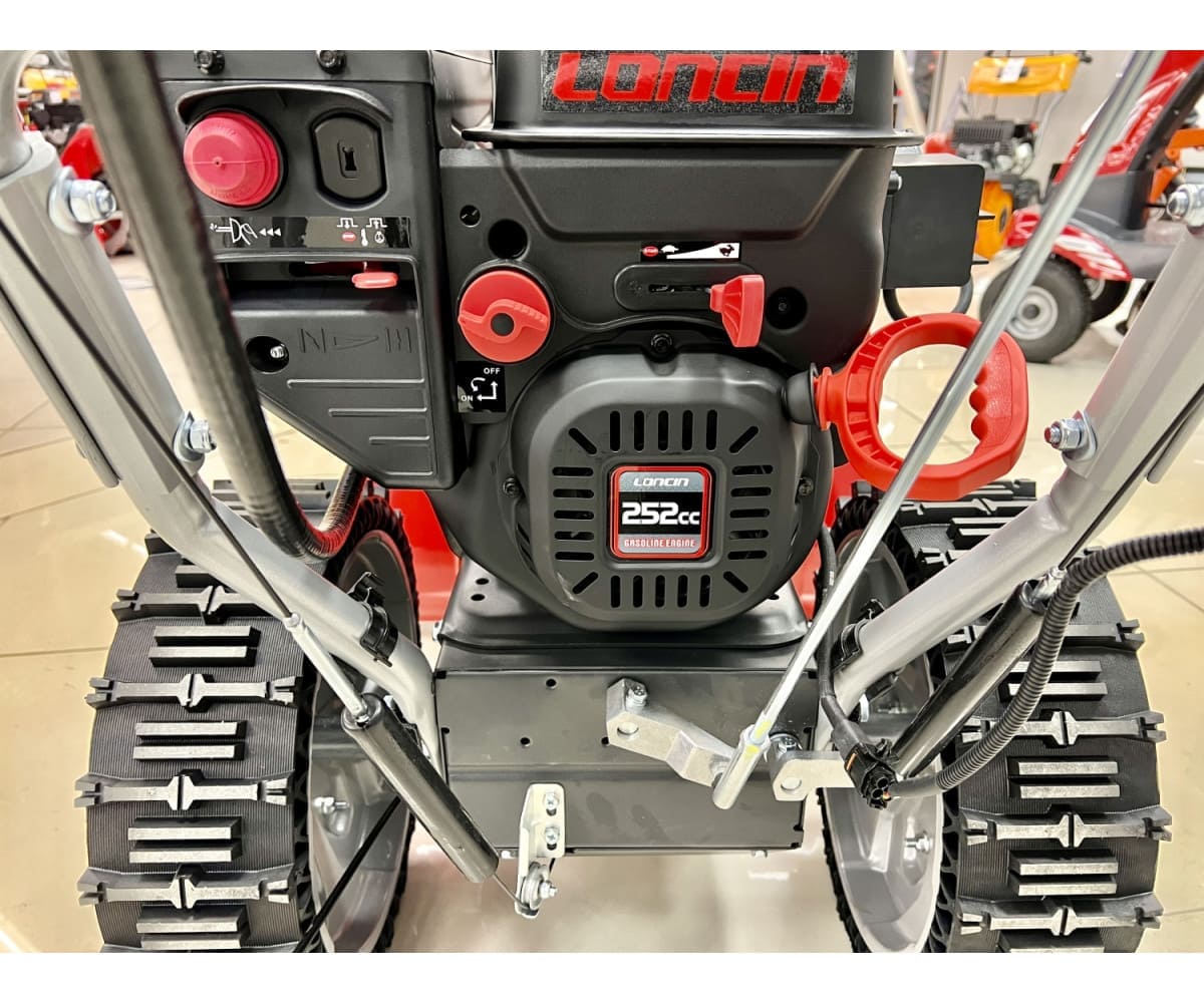 Колёсный привод облегчает перемещение по плитке, асфальту и утрамбованному снегу. Силовая установка LONCIN 9 л.с. (252 см³)
